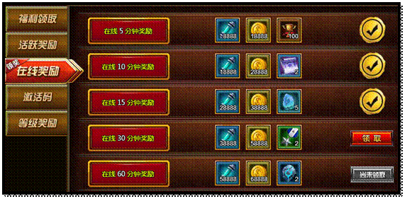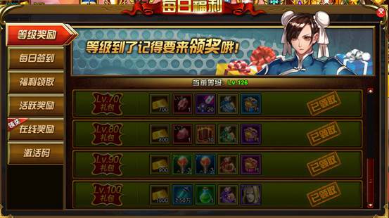 10級:100金券、10萬金幣、50聲望、1級紫寶石、15級成長禮包