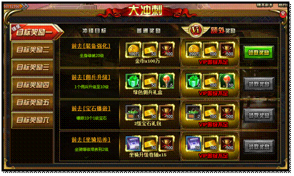 活動內容:每達到一個衝鋒目標,將會獲得豐厚獎勵。