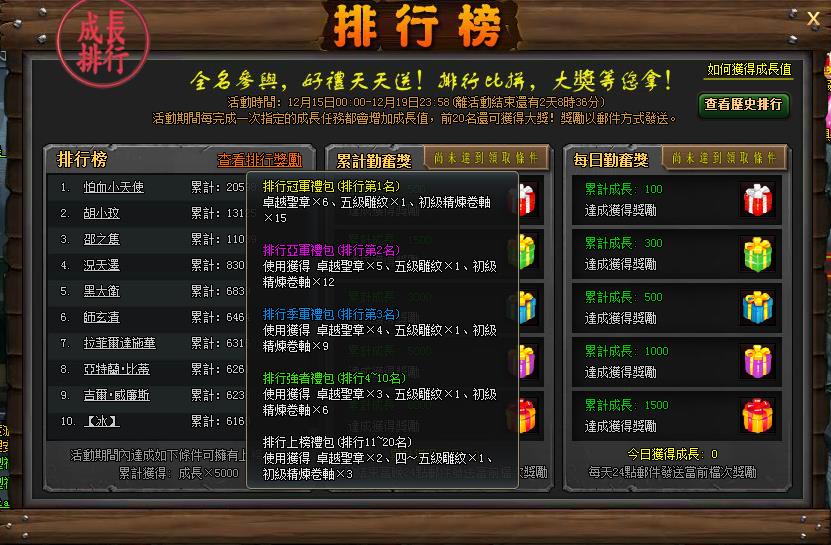 1、 成長排行榜&成長幸運日