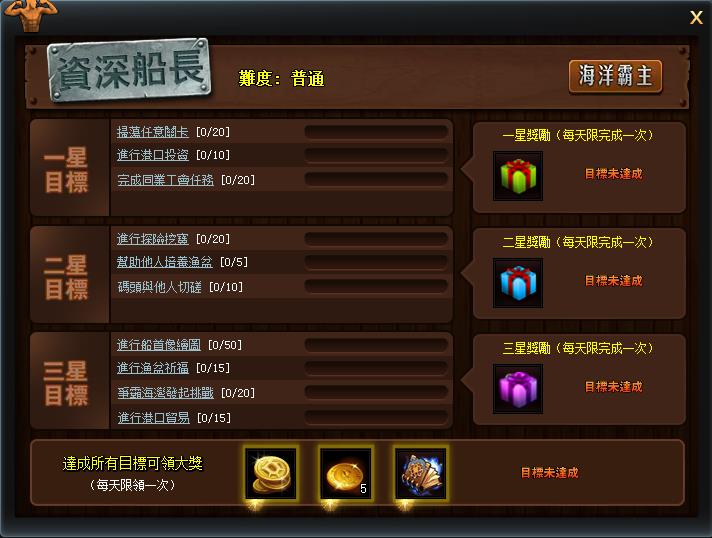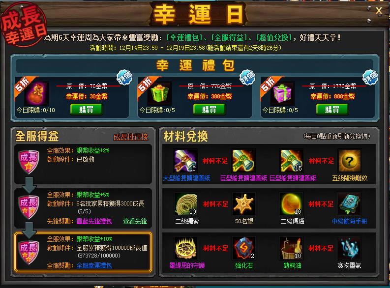 每日遠航禮包:每日儲值達到300金幣可獲得。