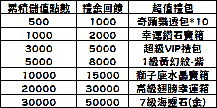 【活動說明】活動期間內不限儲值方式,每日累積儲值達指定金額,除可獲得禮金返利還可獲得各項超值禮包!
