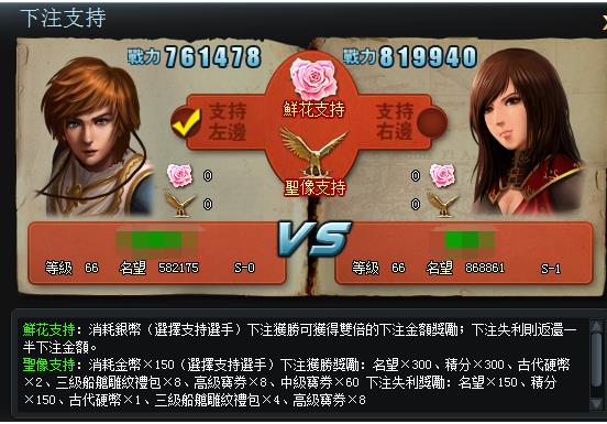 此階段玩家可以觀看選手所有已進行的比賽錄像,也可以進行下注,下注分為鮮花支持和聖象支持兩種,被下注的選手勝出後,玩家可以獲得對應的下注獎勵