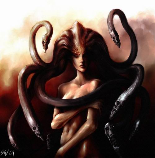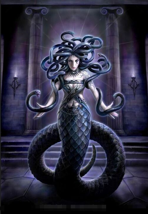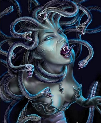 在希臘神話中美杜莎原本是壹位美麗的少女,而且得到了海神波塞冬的愛,然而因為傲慢的個性,壹次在智慧女神的神廟裏說自己比女神還要美麗,最終激怒了雅典娜,被施法將她的那頭秀發變成了無數條毒蛇(也有傳說是9條毒蛇)。美女因此成了妖怪,更可怕的是她還因此得到了壹雙恐怖的雙眼,任何人哪怕只跟她對視壹 眼,就將被瞬間石化。。。。