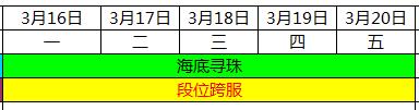 3月16日--3月20日活動安排(海底尋珠子,段位跨服)