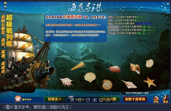 在打撈物品時,有一定幾率可以獲得珍珠。海底尋珠活動期間,珍珠可以用來兌換優秀的海員和超級戰艦——巴倫西亞哦!!!