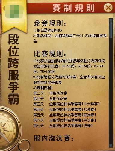 5)每個段位篩選出的8位玩家參與全服淘汰賽