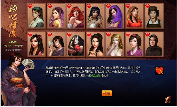 發揮你的想像,用你的情商,征服大航海世界中酒吧中的14位妹紙吧!