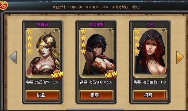 名人堂第壹期兌換海員:美麗勇敢的戰士凱羅爾、美女海員-克裏斯汀娜、神秘航海士艾希、蛇女-美杜莎