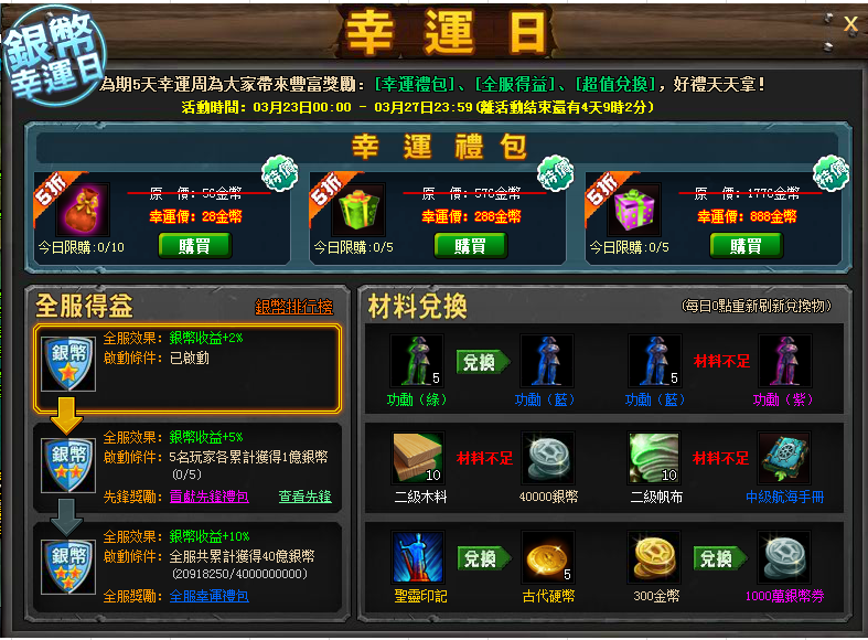 5、 銀幣排行榜&銀幣幸運日