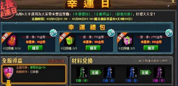 幸運日期間,可以購買幸運禮包!只需消耗少量的金幣,即可獲得:名望、銀幣、補給等哦~