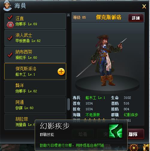 傑克船長的技能