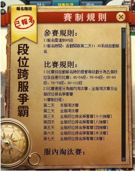 3)全服淘汰賽共分為2輪:第一輪為黃金組淘汰賽,第二輪為白銀組淘汰賽