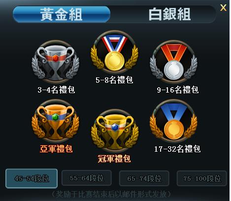 6)每個段位篩選出32位玩家參與全服段位排位爭奪賽黃金組