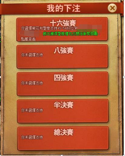 2)押注支持分為聖像支持與鮮花支持:聖像支持消耗金幣,鮮花支持消耗銀幣