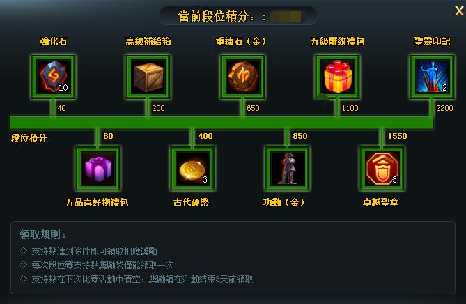 2)每個段位積分獎勵在活動時間內僅可以領取一次