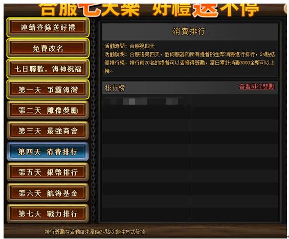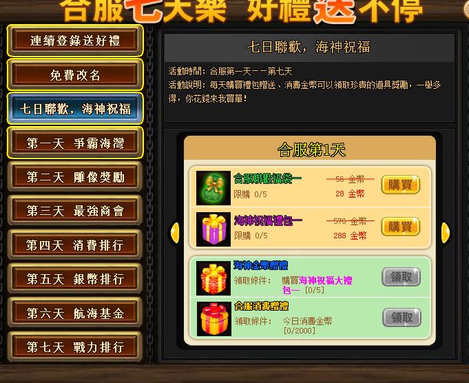 3、 七日聯歡 海神祝福——海神為大家送來祝福,福袋禮包送好禮,消費金幣獎勵不停!