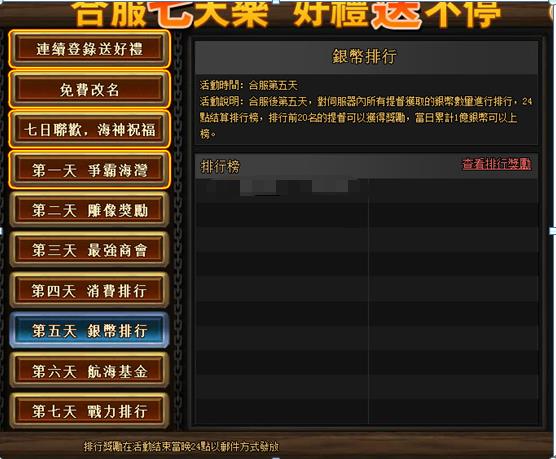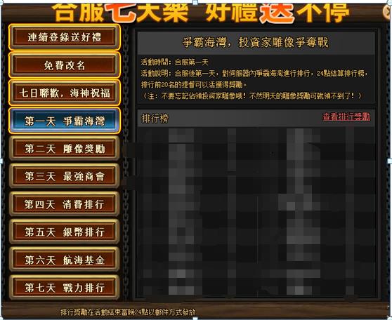 6、 爭霸海灣排名:兩個服的第一按原有伺服器順序排名1和2,第二名分別為3和4,後續排名順延