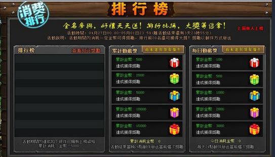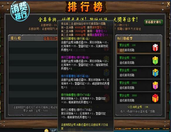 每日勤奮獎、累計勤奮獎、排行榜獎勵