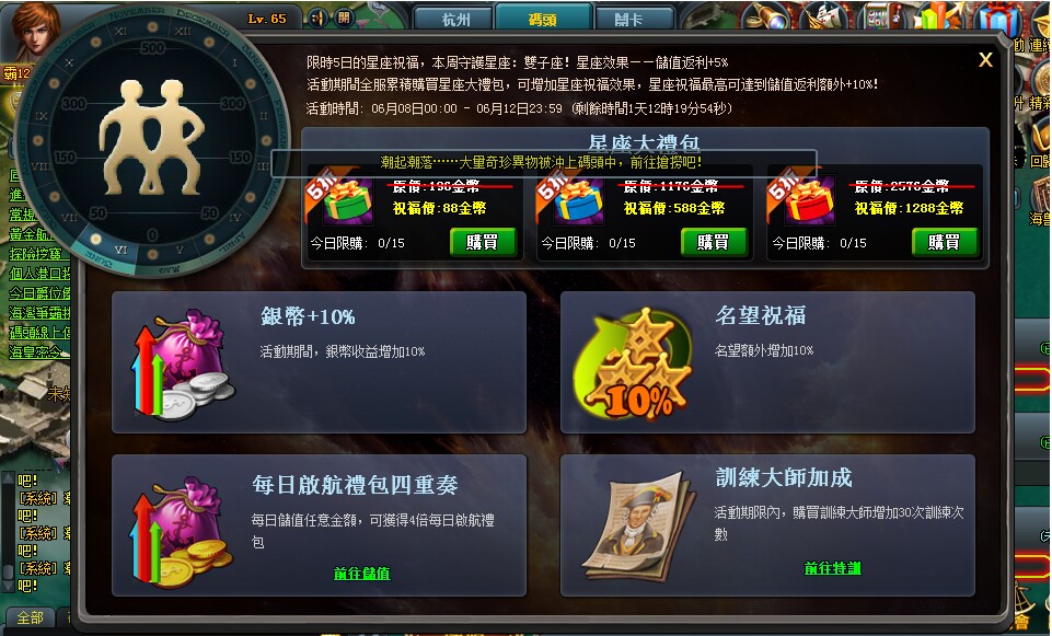 本月星座祝福再次開啟!靈活善變的雙子座降臨大航海的世界,為全體提督帶來增益buff!