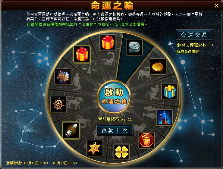 玩家可以通過消耗1個命運羅盤,在命運之輪中進行一次抽獎